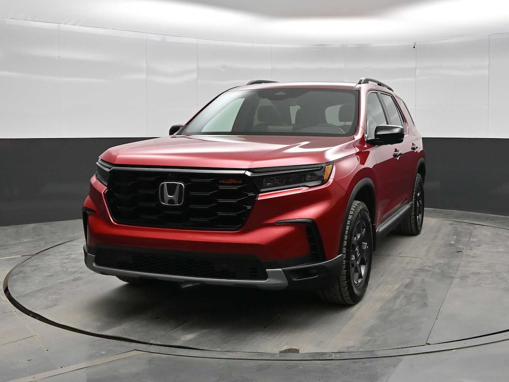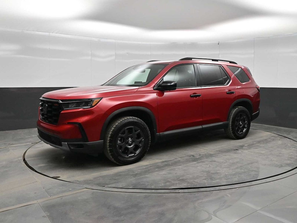 Third Row Seat, Moonroof, Panoramic Roof, All Wheel Drive, Quad Bucket Seats, Power Liftgate, Rear Air, Heated Driver Seat, Back-Up Camera, Satellite Radio. Rear Spoiler, MP3 Player, Remote Trunk Release, Privacy Glass. Honda TrailSport with Radiant Red Metallic II exterior and Black interior features a V6 Cylinder Engine with 285 HP at 6100 RPM*.
